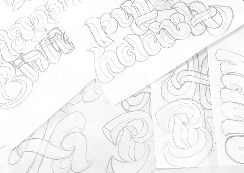 Primero pensamos en que queríais comunicar o decir. A partir de ahí, dibujamos a mano propuestas en 2D de forma y estilo tipográfico.